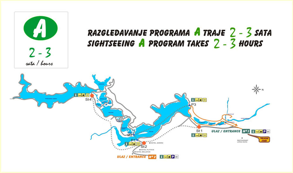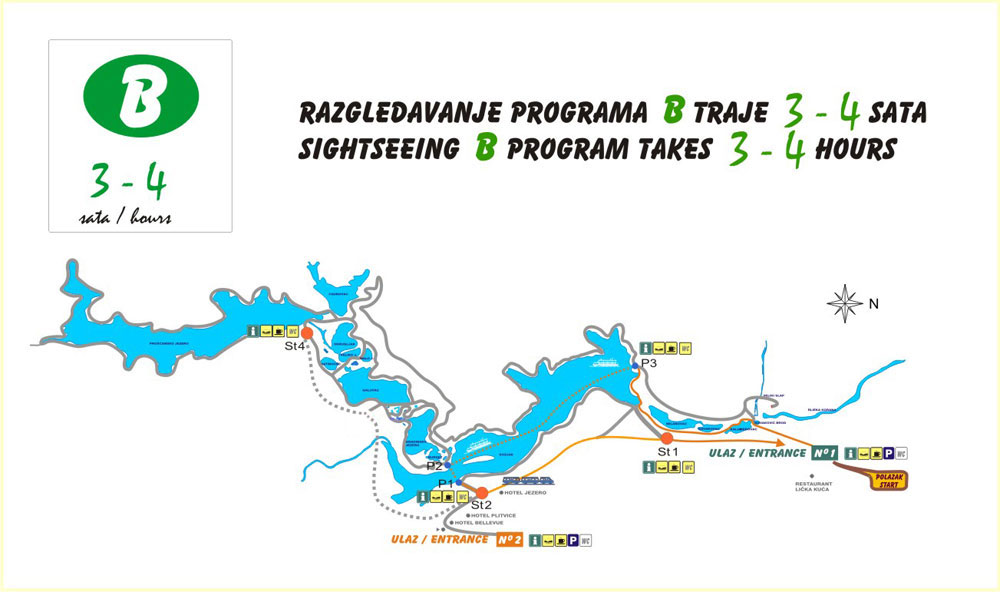 Ci sono due ingressi al Parco con parcheggi spaziosi (prezzo: 7 Kuna/ora). Agli ingressi troverete le piante del Parco con giri / percorsi prestabiliti che potete seguire: