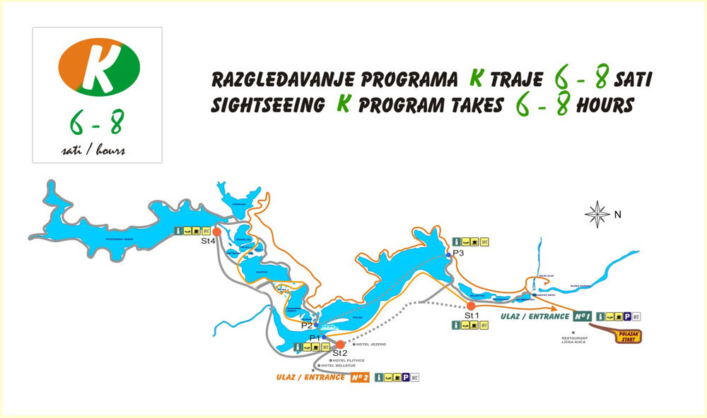 - C (4 – 6 ore) Giro a piedi, giro in autobus fino alle parti superiori del parco nazionale e navigazione sul lago Kozjak